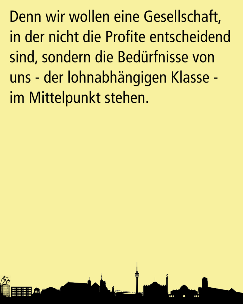 Denn wir wollen eine Gesellschaft, in der nicht die Profite entscheidend sind, sondern die Bedürfnisse von uns – der lohnabhängigen Klasse – im Mittelpunkt stehen.