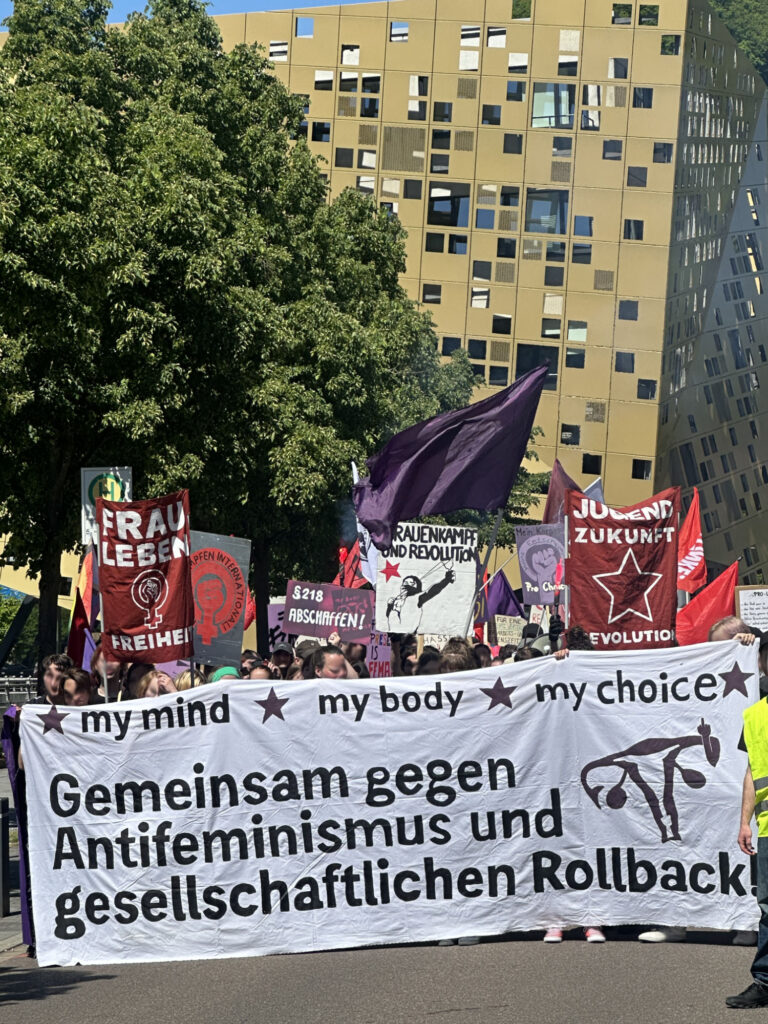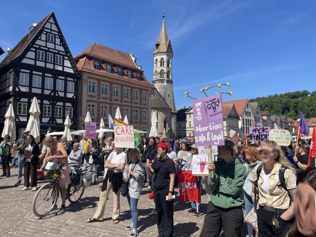 Gemeinsam haben wir es geschafft, dass der „Lebensschützer“-Kongress in Schwäbisch Gmünd nicht ohne weiteres Aufsehen stattfinden konnte! Bereits im Vorfeld klärten wir durch einen Infostand auf und konnten unsere Positionen und Forderungen auch auf weiteren Kanälen in die Öffentlichkeit tragen. Mit der zentralen Demonstration haben wir nun unseren Protest sichtbar in die Stadt getragen!