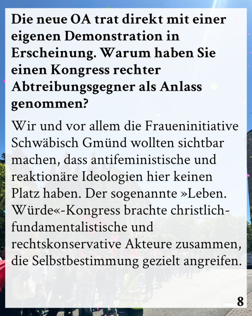 Die neue OA trat direkt mit einer eigenen Demonstration in Erscheinung. Warum haben Sie einen Kongress rechter Abtreibungsgegner als Anlass genommen?