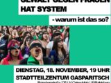 Um Gewalt gegen Frauen ernsthaft zu verhindern, braucht es keine rassistische Hetze oder Abschiebeflüge. Wir brauchen für die Sicherheit von Frauen nicht mehr Lichter im Park, mehr Polizeistreifen oder weniger migrantisierte Personen. Nein, wir müssen uns dafür anschauen, woher diese Gewalt kommt, wo dessen Wurzeln liegen. Welche patriarchalen Rollenbilder und Vorstellungen Männer dazu scheinbar ermächtigen, über die körperliche Unversehrtheit, die Psyche und das Leben von Frauen entscheiden zu können. Welche patriarchalen Besitzansprüche dahinter stecken und wie wir die scheinbare Naturgegebenheit von Gewalt gegen Frauen durchbrechen können. Dazu brauchen wir keinen Bundeskanzler Merz, keinen Nopper und keine CDU! Wir müssen die Veränderung selbst in unsere Hände nehmen und unsere Gesellschaft von Grund aus umgestalten.