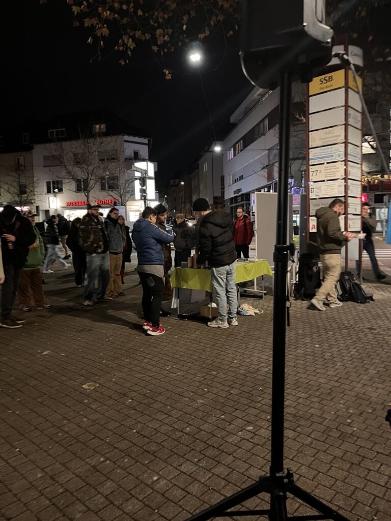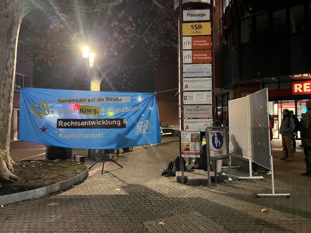 Deshalb haben wir am Freitag, den 28. November, zu einer Stadtteilkundgebung aufgerufen unter dem Motto „Geld für unser Viertel – statt für ihre Kriege!“. Unser Ziel war es, die politischen Entwicklungen genau dort sichtbar zu machen, wo Menschen leben, arbeiten und ihren Alltag verbringen.