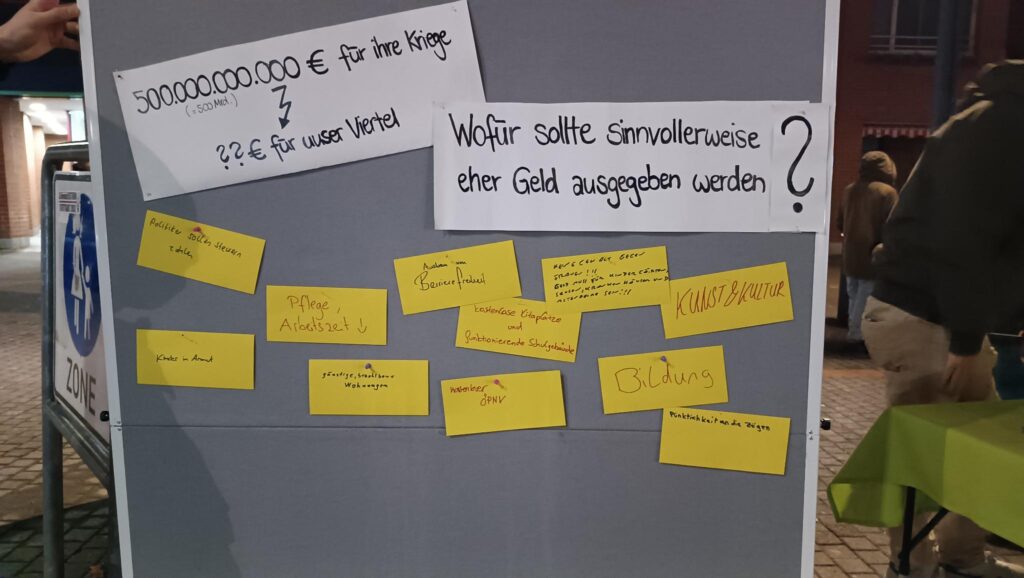 Geld für unser Viertel – statt für ihre Kriege – Bericht zur Kundgebung und Infotisch