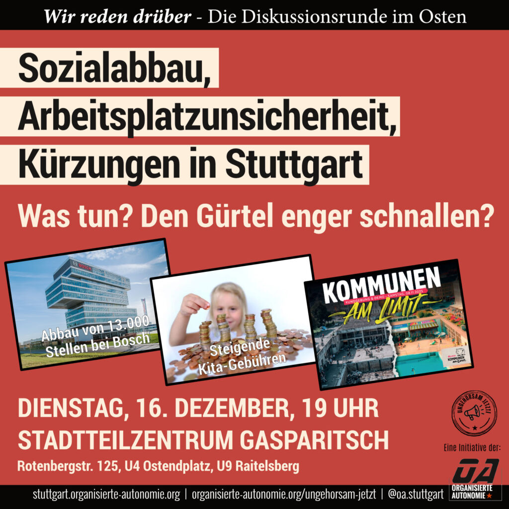 Dezember 2025: Sozialabbau, Arbeitsplatzunsicherheit, Kürzungen in Stuttgart … was tun? Den Gürtel enger schnallen?
